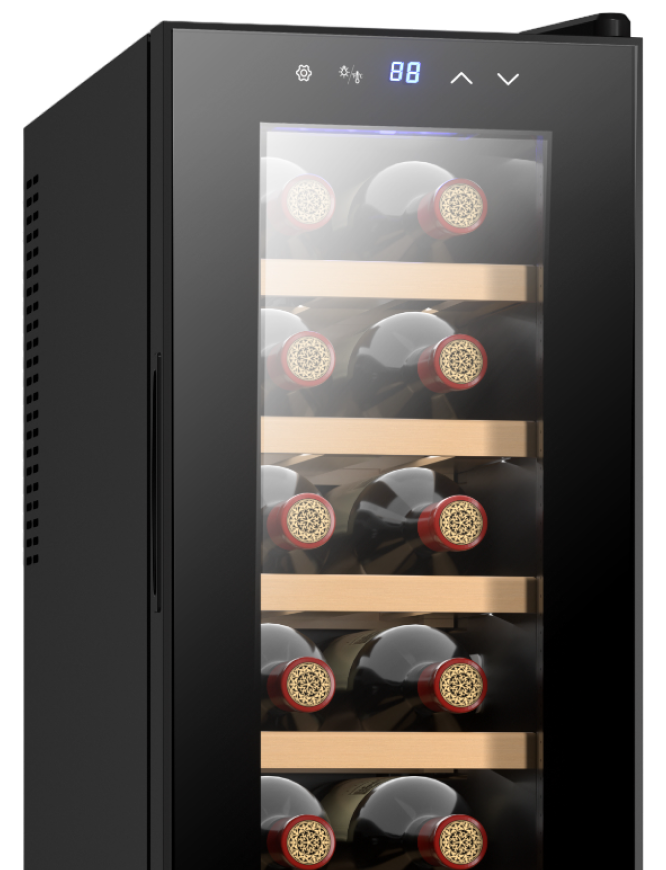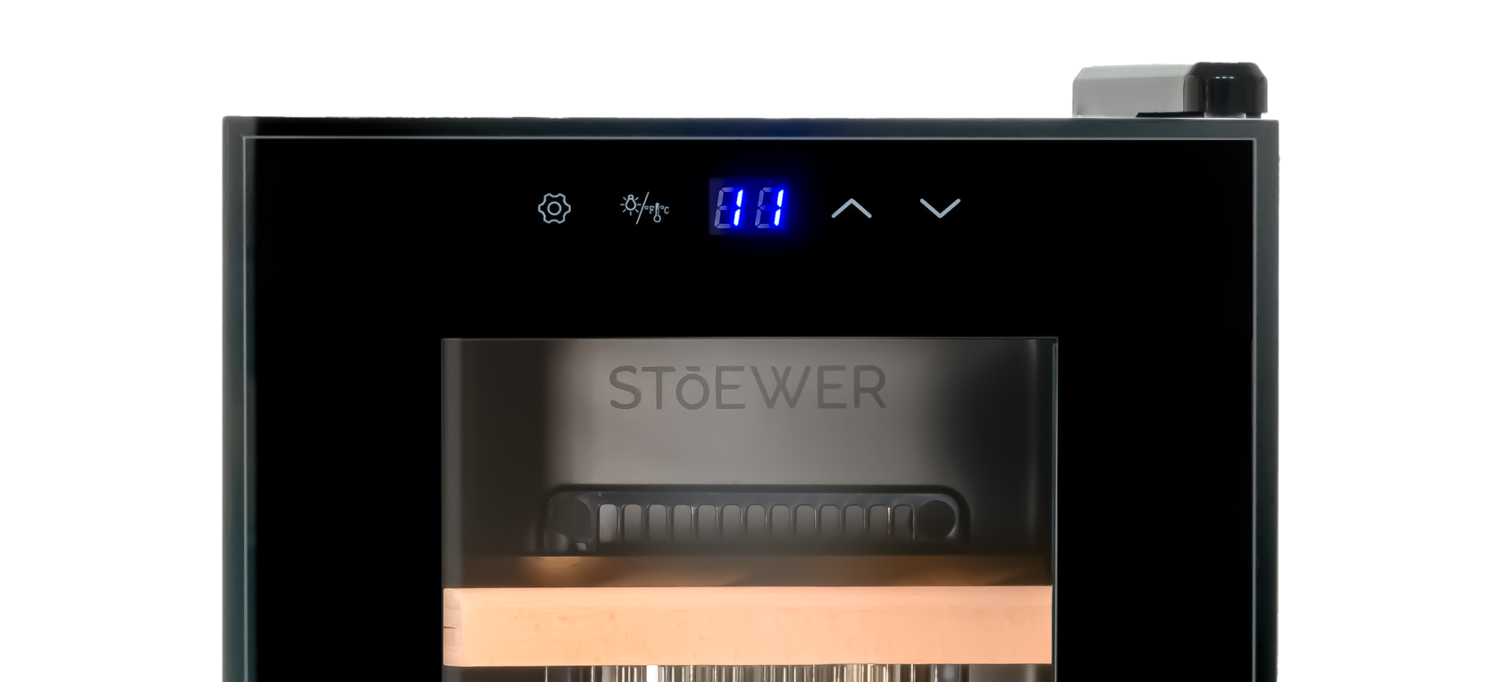 Панель управления Винных шкафов STOEWER с интуитивно понятными настройками обеспечивает простой контроль над температурой, которая отображается на цифровом дисплее. Дополнительная кнопка для включения внутренней подсветки упрощает выбор вина.
